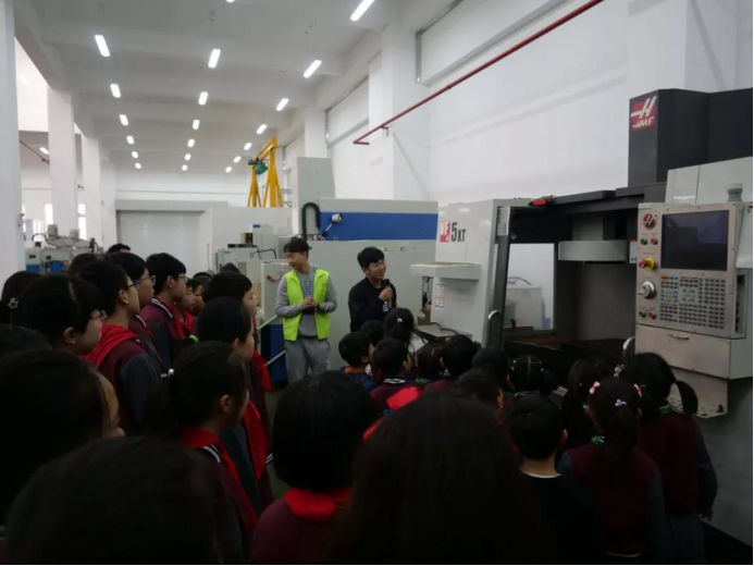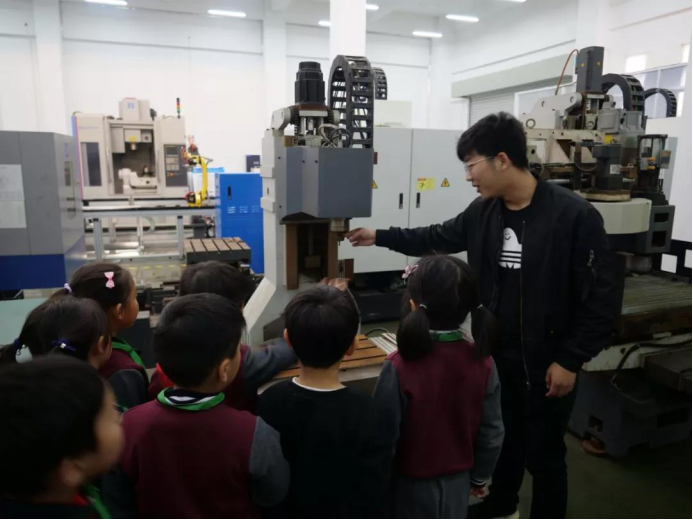 臨外的師生首先參觀了機(jī)械樓大廳,緊接著在我校志愿者帶領(lǐng)下,觀摩了傳統(tǒng)先進(jìn)制造業(yè)展區(qū),小朋友們對傳統(tǒng)工業(yè)制造技術(shù)很感興趣,踴躍提問,志愿者一一解答。