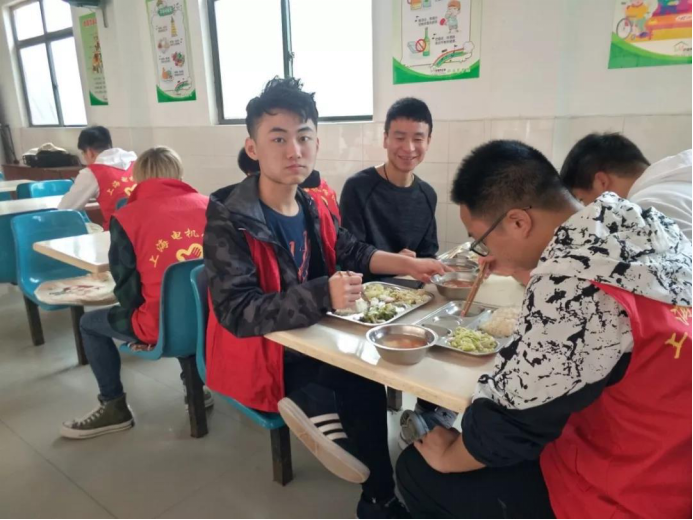 經過一上午的活動后,志愿者們中午12點在養(yǎng)護院餐廳就餐,并一起討論下午活動開展需注意的細節(jié)。