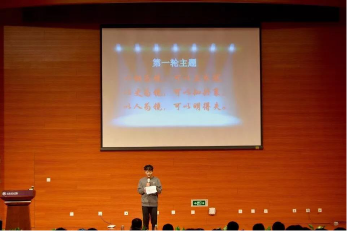 第二輪“即興演講”環(huán)節(jié),以我校校訓(xùn)“明德至善,博學(xué)篤行”為主題。進(jìn)入的六名選手對(duì)此八字詳思甚解,各抒己見。讓在場(chǎng)的各位觀眾對(duì)校訓(xùn)有了更深刻的認(rèn)知。