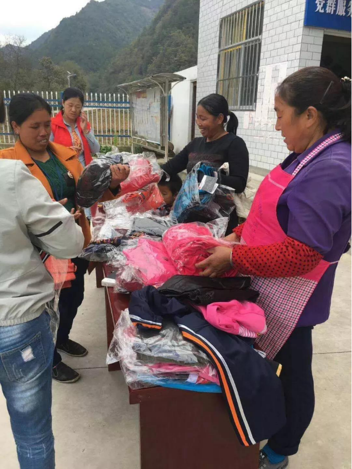 分發(fā)捐贈衣物的照片