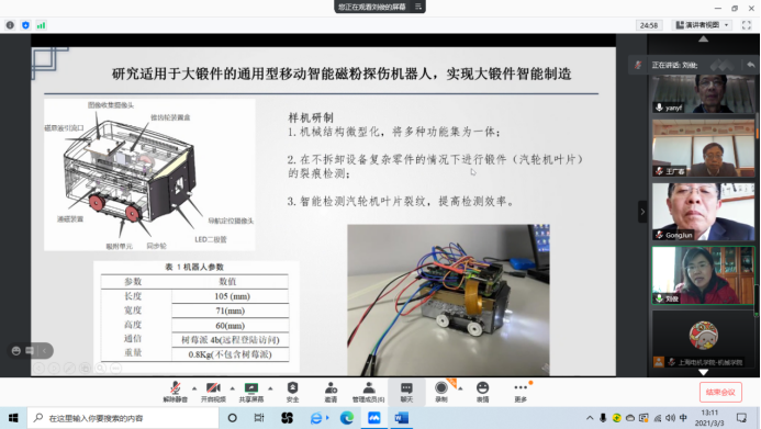 會上,辛教授首先介紹了專家組成員、中期檢查項(xiàng)目的立項(xiàng)背景和會議日程。專家組成員分別聽取了高原學(xué)科2020年立項(xiàng)的預(yù)研及開放基金項(xiàng)目“大鍛件磁粉探傷智能機(jī)器人關(guān)鍵技術(shù)研究”、“大型鍛造復(fù)雜零件的表面微小細(xì)裂紋磁粉探傷”等四個項(xiàng)目的負(fù)責(zé)人所作的項(xiàng)目中期工作匯報,對照項(xiàng)目中期考核指標(biāo),對每個項(xiàng)目分別進(jìn)行了技術(shù)、經(jīng)濟(jì)、進(jìn)度的提問、答辯與評審。最終經(jīng)評審專家討論商議后,同意參加答辯的四個項(xiàng)目通過中期檢查。專家組還給各項(xiàng)目組提出了寶貴的建議。最好,辛教授代表高原學(xué)科對各位專家的辛勤工作表示感謝!