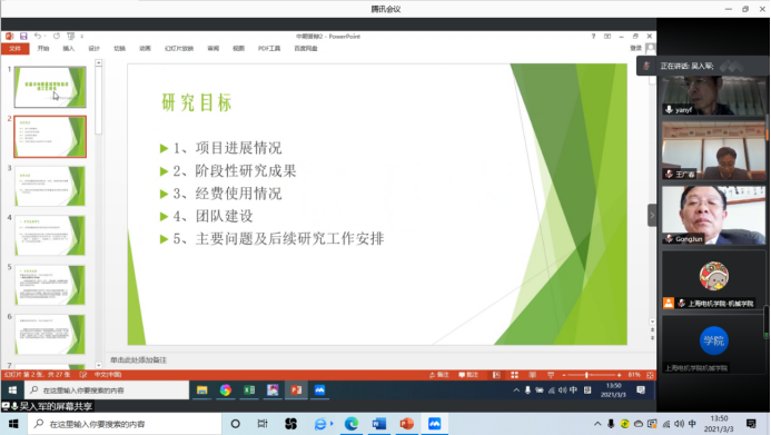 2021年3月3日,機(jī)械學(xué)院召開上海市高原學(xué)科-機(jī)械工程2020年立項(xiàng)預(yù)研及開放基金項(xiàng)目中期檢查答辯會,答辯會以線上會議形式舉行。參加本次答辯會的專家組成員分別為:組長山東大學(xué)博士生導(dǎo)師王廣春教授、組員分別是上海振華重工(集團(tuán))股份有限公司原總工程師嚴(yán)云福教授級高級工程師及上海聯(lián)宏創(chuàng)能信息科技有限公司董事長兼總經(jīng)理龔軍。高原學(xué)科負(fù)責(zé)人辛紹杰教授出席了本次答辯會。