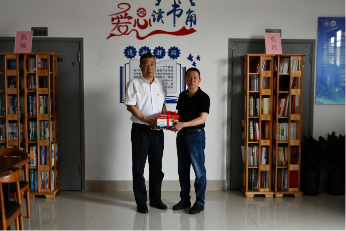 Alumni Wang Jiguang and vice president Yang Wanfeng jointly unveiled the love reading corner of Yihang post station and donated books to his alma mater, which is not only a passionate dedication to the resource construction of his alma mater, but also a spiritual inheritance.