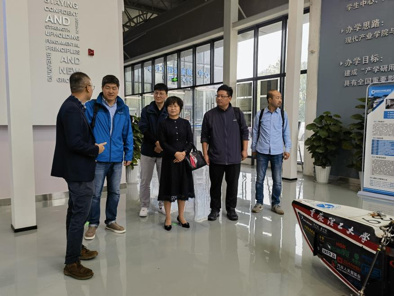 11月3號(hào)上午,為提升學(xué)科建設(shè)水平和人才培養(yǎng)質(zhì)量,調(diào)研團(tuán)一行前往重慶理工大學(xué)車輛工程學(xué)院調(diào)研。在重慶理工大學(xué)車輛工程學(xué)院副院長蔣成約帶領(lǐng)下,趙爽一行參觀了新能源汽車現(xiàn)代產(chǎn)業(yè)學(xué)院、車輛工程教學(xué)示范中心。