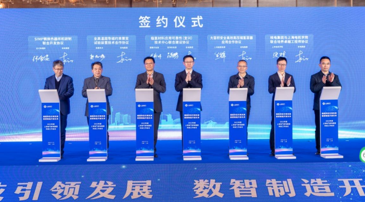上海電氣核電集團于2023年12月15日召開了主題為“硬核科技引領(lǐng)發(fā)展 數(shù)智制造開創(chuàng)未來” 2023年度上海電氣核電集團科技工作會議。上海市政府主管部門領(lǐng)導(dǎo)、國家核電領(lǐng)域科研院所、高校代表和核電集團所屬企業(yè)代表等130余人參加會議。張棟副院長作為學(xué)校代表之一出席了本次會議,并在會上與核電集團簽訂了聯(lián)合培養(yǎng)卓越工程師的協(xié)議。
