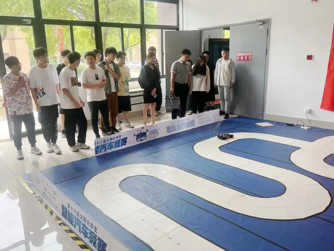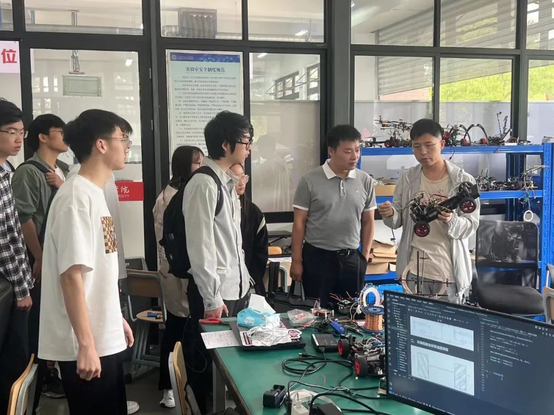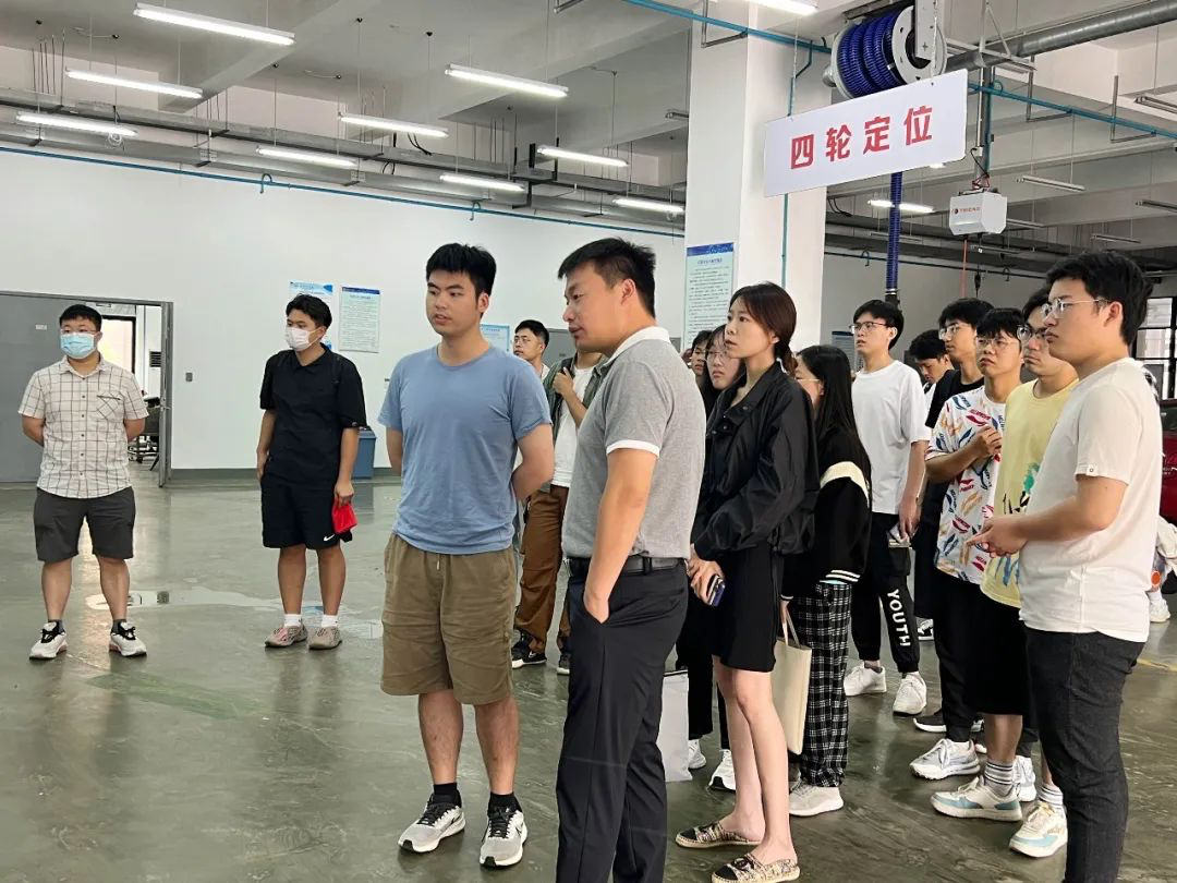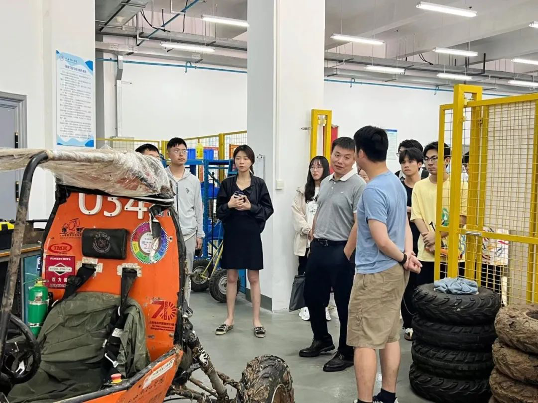 之后,大家移步車間,機(jī)械學(xué)院嚴(yán)屹宏老師向大家講解并展示制作完工的智能小車在模擬賽道上的自如行駛。接著,通過巴哈社團(tuán)的隊(duì)長的介紹,了解了巴哈賽車的總體情況、BSC巴哈賽事情況以及逐風(fēng)車隊(duì)的參賽情況。同學(xué)們之間互相討論,并用手機(jī)拍照記錄。
