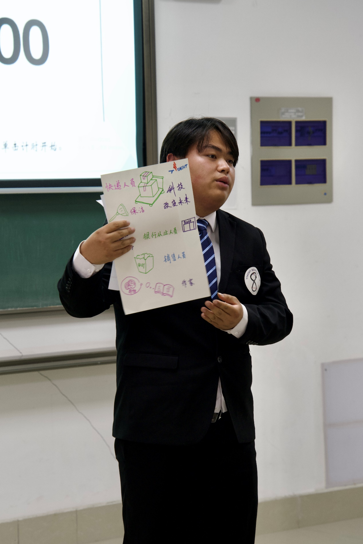 第二組抽取的題目是人工智能對(duì)職業(yè)的沖擊,他們根據(jù)交流復(fù)雜程度、可取代性等角度分析并派代表進(jìn)行總結(jié)。