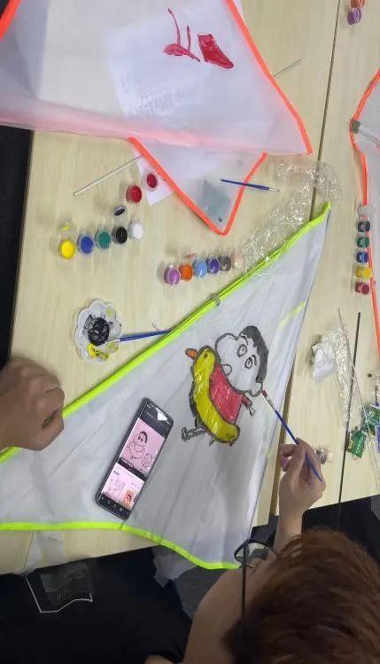 活動開始,負(fù)責(zé)人為同學(xué)們準(zhǔn)備了風(fēng)箏和畫筆,讓參與活動的同學(xué)們盡可能地發(fā)揮自己才能,創(chuàng)造出屬于自己的獨(dú)特風(fēng)箏。