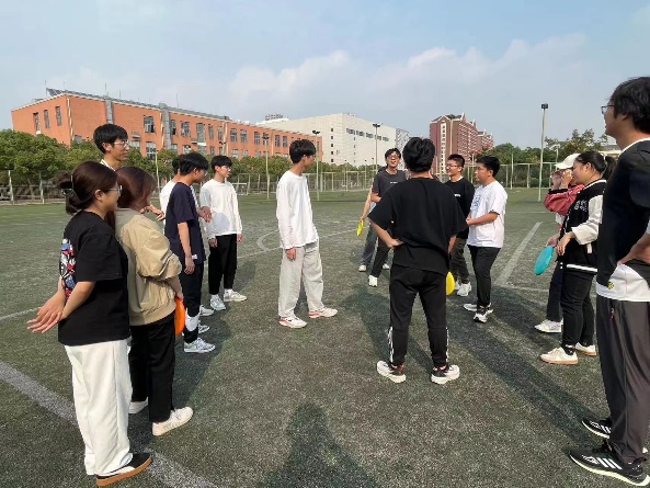 在足球場(chǎng)上,飛盤社的同學(xué)給我們作了詳細(xì)的講解,教同學(xué)們?nèi)绾稳映鲲w盤和用何種哪種手勢(shì)去接飛盤,并制定了比賽規(guī)則,以7人為小組進(jìn)行團(tuán)體賽。同學(xué)們聽(tīng)的認(rèn)真,玩的認(rèn)真,在一飛一接中逐漸熟悉了規(guī)則并且培養(yǎng)了手感。