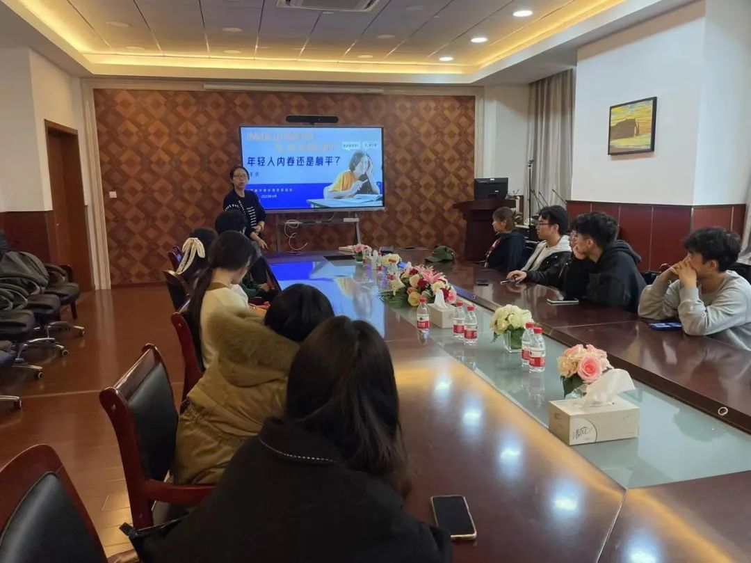王潔老師以當(dāng)下的熱點(diǎn)詞匯“內(nèi)卷”和“躺平”為引導(dǎo),深入挖掘其背后真實(shí)的心理因素,從四個(gè)方面來講述“內(nèi)卷風(fēng)氣的形成”“人們深陷內(nèi)卷背后的原因”“躺平的實(shí)質(zhì)”和“如何處理好內(nèi)卷與躺平的關(guān)系”。她引導(dǎo)心理委員們意識(shí)到,有些熱點(diǎn)詞匯的背后體現(xiàn)的是某些群體在社會(huì)環(huán)境下心理的變化。