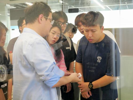 在犀浦智能工業(yè)4.0工廠參觀過程中,技術(shù)總監(jiān)吳老師為大家講解并演示了從客戶下訂單到成品入庫的整個(gè)生產(chǎn)過程,生產(chǎn)速度之快,識別準(zhǔn)度之高,充分展現(xiàn)了生產(chǎn)線信息化和智能化極高水平。師生們認(rèn)真聽其講解,并圍繞機(jī)器視覺、數(shù)字孿生的發(fā)展前景以及在產(chǎn)教融合的應(yīng)用等方面提出問題。吳老師一一解答,與師生進(jìn)行了互動和交流,并且表示數(shù)字孿生是實(shí)現(xiàn)大學(xué)生創(chuàng)新創(chuàng)業(yè)的有效方式。
