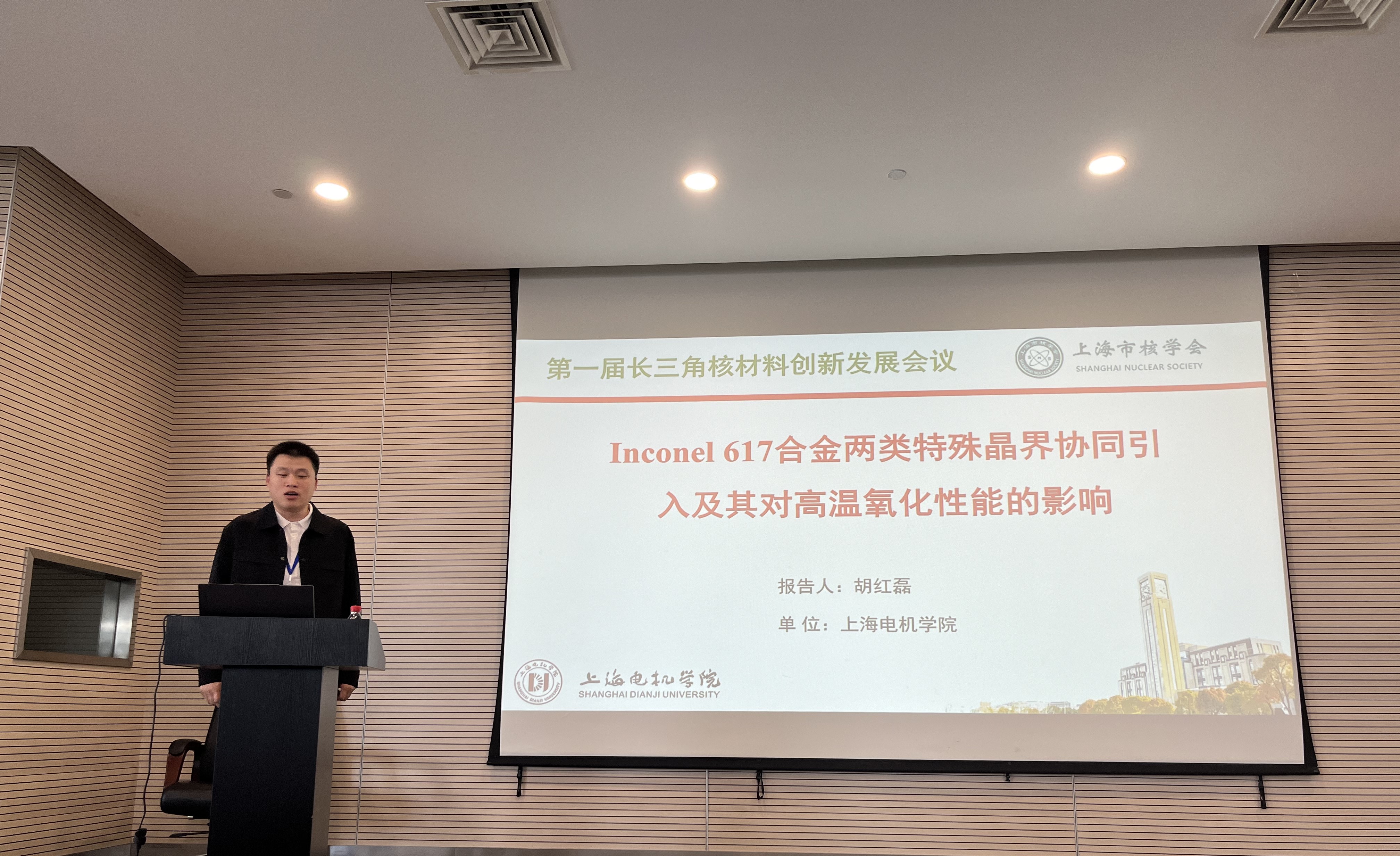 來自香港科技大學(xué)、上海交通大學(xué)、牛津大學(xué)、中國科學(xué)院上海應(yīng)用物理研究所、中國科學(xué)院上海硅酸鹽研究所寶和武特種冶金有限公司等國內(nèi)外知名高校、研究所和企業(yè)的200余名代表參與了本次會議。會議邀請了香港科技大學(xué)/上海大學(xué)張統(tǒng)一院士,上海應(yīng)用物理所原所長徐洪杰教授等專家進行了特邀報告。上海市核學(xué)會核材料專委會委員,機械學(xué)院副教授胡紅磊受邀進行了“Inconel 617合金兩類特殊晶界協(xié)同引入及其對高溫氧化性能的影響”主會場報告。通過參加本次會議,我校師生了解了國內(nèi)外核材料研發(fā)、核電技術(shù)應(yīng)用等方面的發(fā)展現(xiàn)狀,增進了我校與長三角地區(qū)以及全國核材料科學(xué)與技術(shù)的交流。