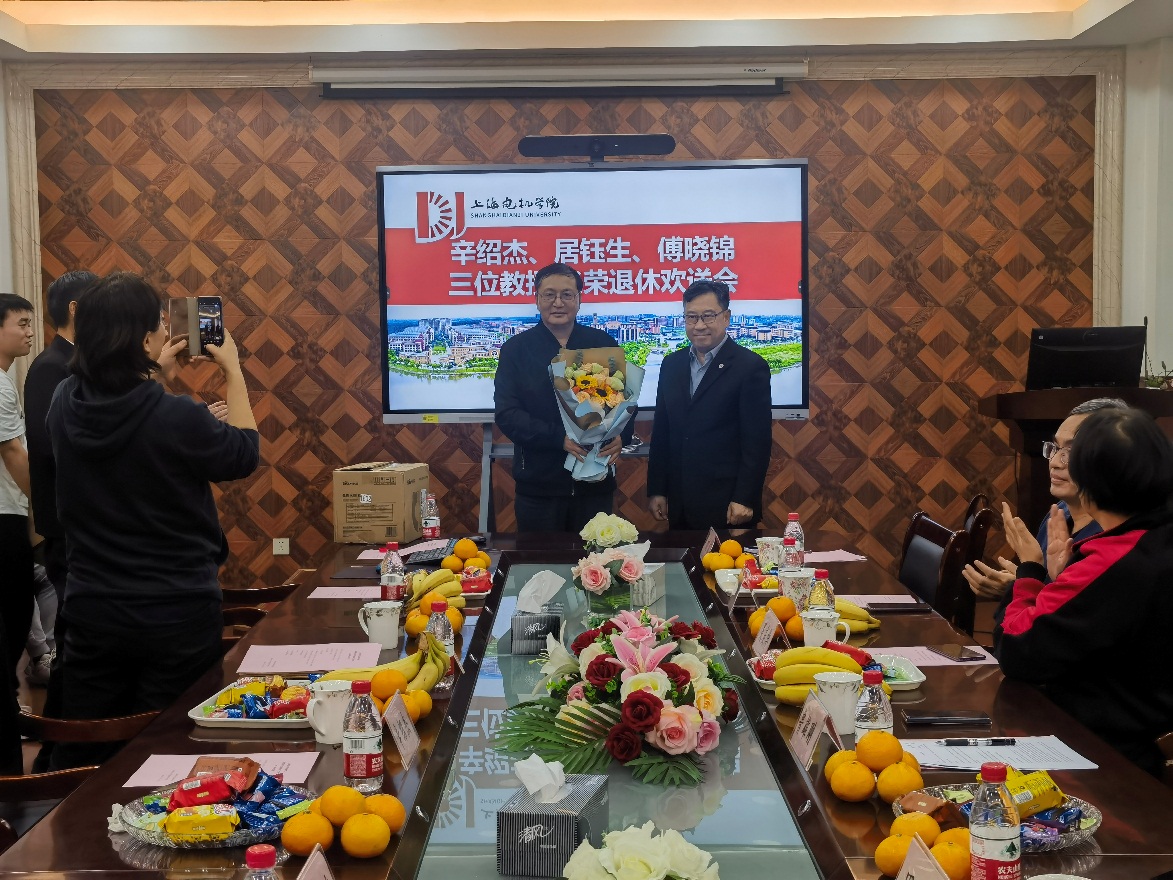 領導們?yōu)闃s休的三位教授頒發(fā)了精心準備的紀念品、鮮花并合影留念。學院工會也為榮休的三位教授準備了象征著美滿幸福的蛋糕,與會人員還唱起了象征著三位教授獲得新的青春的“生日快樂”歌曲,歡快的音樂和齊聲的“榮休快樂”祝福將座談會現場氛圍推向高潮。