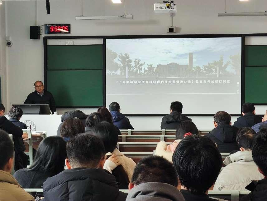 2025年2月14日上午,科技處楊志波副處長(zhǎng)應(yīng)邀蒞臨機(jī)械學(xué)院,對(duì)學(xué)校新修訂的《上海電機(jī)學(xué)院橫向科研項(xiàng)目及經(jīng)費(fèi)管理辦法》進(jìn)行宣講解讀。機(jī)械學(xué)院90余位教師參加學(xué)習(xí)。