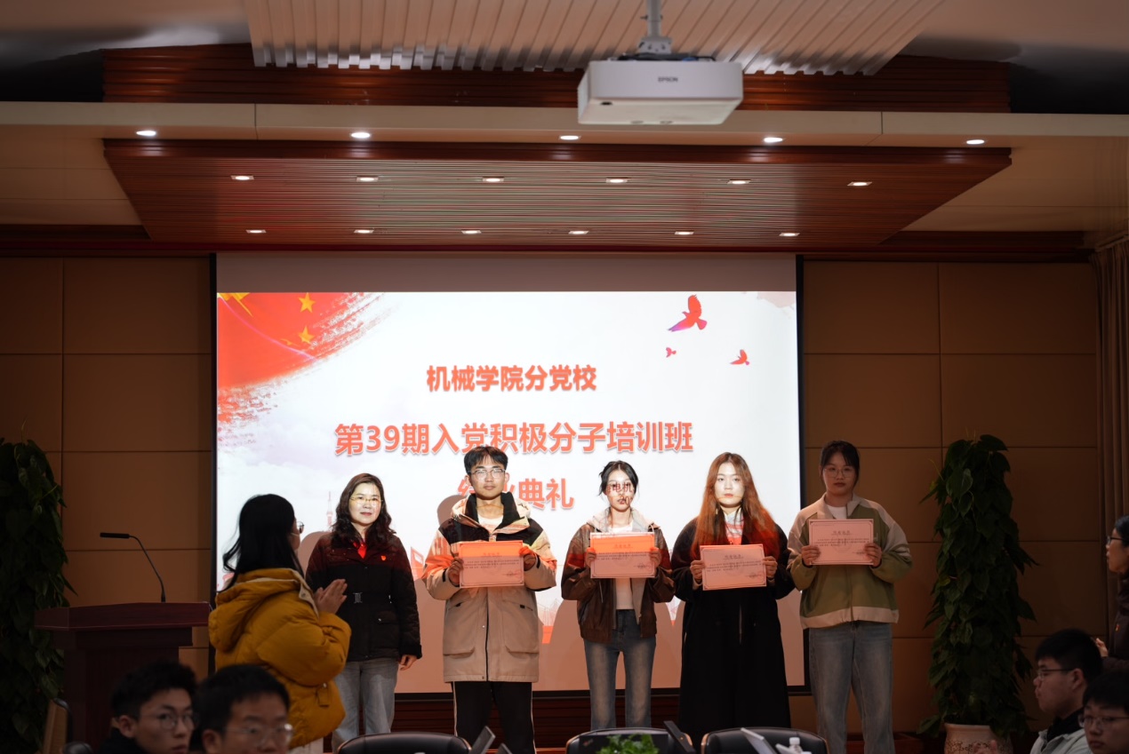 第39期入黨積極分子培訓(xùn)班結(jié)業(yè)典禮由學(xué)院黨委組織員黃金主持,會(huì)上,學(xué)院黨委書(shū)記劉俊為入黨積極分子優(yōu)秀學(xué)員頒發(fā)結(jié)業(yè)證書(shū),并寄語(yǔ)入黨積極分子在結(jié)業(yè)后,應(yīng)繼續(xù)以黨員的標(biāo)準(zhǔn)嚴(yán)格要求自己,在專(zhuān)業(yè)學(xué)習(xí)、課程實(shí)踐、社會(huì)服務(wù)等方面起到示范引領(lǐng)作用,持續(xù)加強(qiáng)學(xué)習(xí)黨的先進(jìn)理論,保持學(xué)習(xí)熱情,從理論知識(shí)中獲取精神力量。