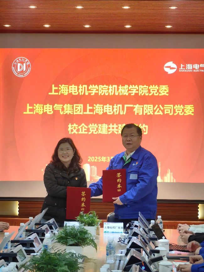 機(jī)械學(xué)院黨委書(shū)記劉俊與上海電機(jī)廠黨委副書(shū)記、紀(jì)委書(shū)記、工會(huì)主席傅彬作為兩方代表簽訂了黨建共建協(xié)議。傅彬同志對(duì)機(jī)械學(xué)院來(lái)訪師生表示熱烈歡迎,他指出上海電機(jī)廠與機(jī)械學(xué)院具有悠久的合作歷史,在人才培養(yǎng)、學(xué)術(shù)交流、就業(yè)培訓(xùn)、就業(yè)渠道拓展等方面開(kāi)展了大量實(shí)質(zhì)性合作,自2015年校企戰(zhàn)略合作以來(lái),共同培養(yǎng)輸送了近百名復(fù)合型人才,彰顯了校企合作“1+1>2”的疊加效應(yīng)。雙方的進(jìn)一步黨建共建將為校企合作注入新的靈魂和動(dòng)力,通過(guò)黨組織的引領(lǐng)和紐帶作用,推動(dòng)各類(lèi)人才培育項(xiàng)目向更深層次、更高水平邁進(jìn)。劉俊表示上海電機(jī)學(xué)院“因產(chǎn)而生,隨產(chǎn)而進(jìn)”,學(xué)校自建校起便與上海電機(jī)廠形成“共生共榮”的地緣紐帶,形成長(zhǎng)期良好的合作關(guān)系,通過(guò)黨建共建的進(jìn)一步深入,學(xué)院將深化“人才聯(lián)育、資源聯(lián)享” 機(jī)制,加強(qiáng)互學(xué)互訪,積極開(kāi)拓校企育人新模式,提升黨建共建新效果,通過(guò)深化產(chǎn)學(xué)研合作、成立科技攻堅(jiān)團(tuán)隊(duì)、聯(lián)合培養(yǎng)等形式,為教育強(qiáng)國(guó)、科技強(qiáng)國(guó)、人才強(qiáng)國(guó)建設(shè)做出新的貢獻(xiàn)。
