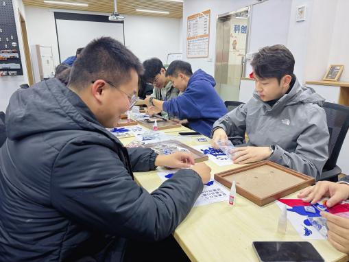 在專業(yè)老師的指導(dǎo)下,黨員們親手體驗(yàn)了這些古老技藝。編織竹畫時(shí),大家感受竹子的挺拔有節(jié),體悟“未出土?xí)r先有節(jié)”的清廉寓意;制作金箔畫時(shí),專注于方寸之間的貼覆,感受“金”的純粹與珍貴,隱喻黨員干部應(yīng)守住的純粹初心;繪制青花瓷時(shí),一筆一畫勾勒素胚,體會(huì)“瓷”的潔白端正,象征為人處世應(yīng)持守的方正品格。活動(dòng)現(xiàn)場(chǎng)氛圍專注而溫馨,黨員們?cè)趧?dòng)手實(shí)踐中不僅放松了身心,更完成了一次深刻的廉潔文化沉浸體驗(yàn)。