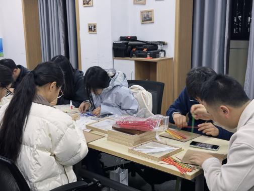 當(dāng)日下午,支部黨員和入黨積極分子在21宿活動(dòng)室參加了“指尖非遺·匠心如磐”黨風(fēng)廉政主題實(shí)踐活動(dòng)。活動(dòng)將廉政教育融入非遺手工藝體驗(yàn),設(shè)置了竹編畫、金箔畫和青花陶瓷畫三項(xiàng)內(nèi)容。